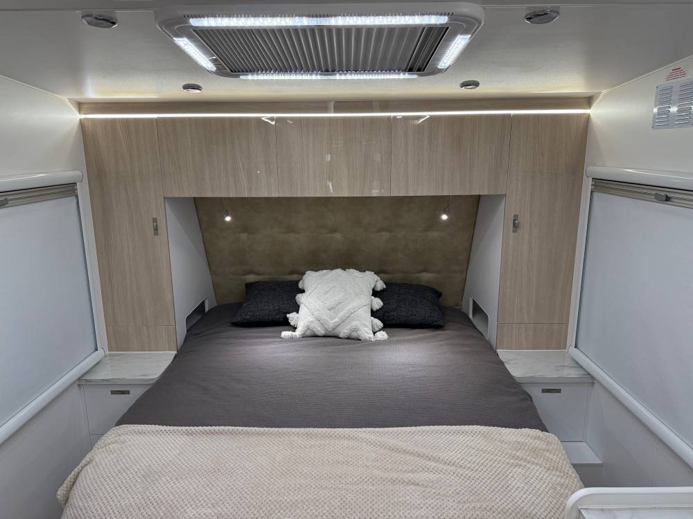We have 2 berth, 3 berth, 4 berth & 5 Berth. Enquire for floor plans of each stock. We also have lots of vans with an ensuite, Hybrid, shower, Toilet, Off Road, Bunk, Bunks, 4x4, Club Lounge, Outback.