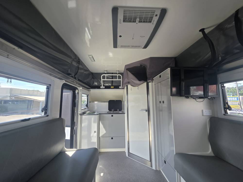 Internal Kitchenette: Includes a small sink and bench space for use in poor weather.